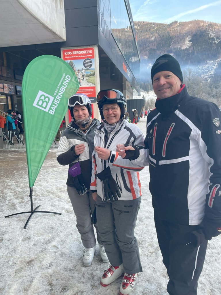 Am vergangenen Freitag fand der fünfte Bauernbund-Skitag in Hinterstoder – das Skigebiet liegt auf einer Höhe von 600 bis 2000 Metern – statt. Das Wetter spielte perfekt mit und auch die Pisten waren in einem guten Zustand. Bei Kaiserwetter und herrlicher Fernsicht schnallten viele Bauernbund-Mitglieder die Ski an und genossen bei einer stark vergünstigten Tagesskikarte von 42 Euro das großartige Panorama des Stodertales. Die Skikarten konnten nach Vorweis des Mitgliederausweises in der Bauernbund-App beim Bauernbund-Stand in der Talstation gekauft werden. Zur Begrüßung erhielten die Mitglieder beim BB-Stand einen Schnaps.